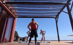 Bondholders workout on the poolside terrace overlooking Funchal and the Atlantic Ocean.